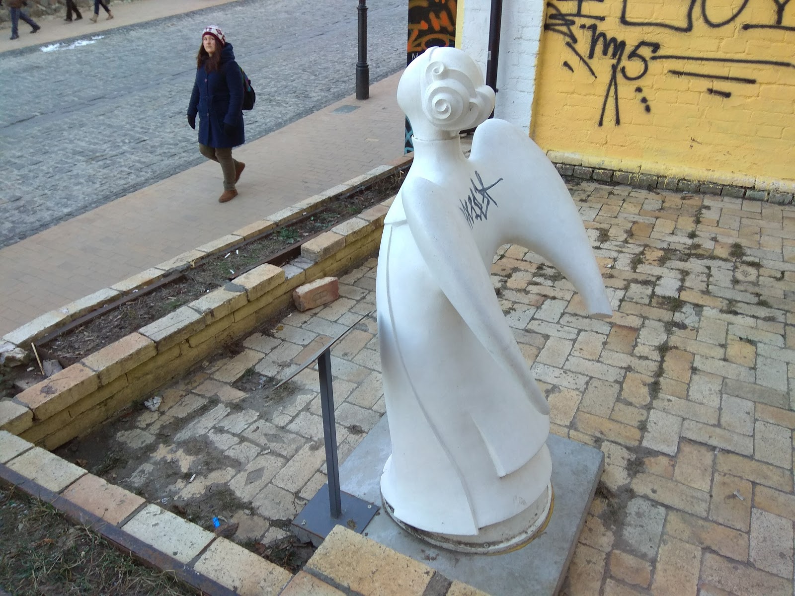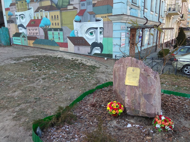 Я постояла у камня, послушала произведения в его исполнении, они льются откуда-то из под земли. И подумала, что эта война всегда будет рядом, как лестницы, как муралы и граффити, но она уже навсегда будет рядом и мне непонятны люди (а я знаю таких) которые просто от нее отмахиваются, на манер "чик-чирик-я-в-домике".