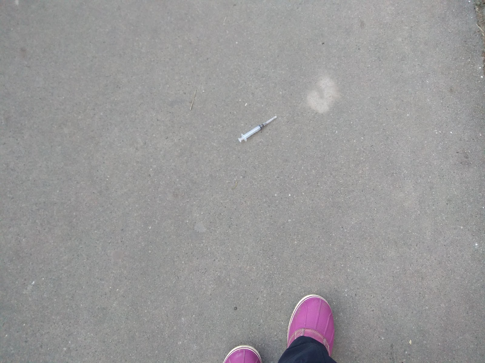Откуда я это знаю? Я внимательно смотрела под ноги когда шла и видела как минимум пятнадцать оберток от шприцов. Самих шприцов мое внимательное око не заметило.