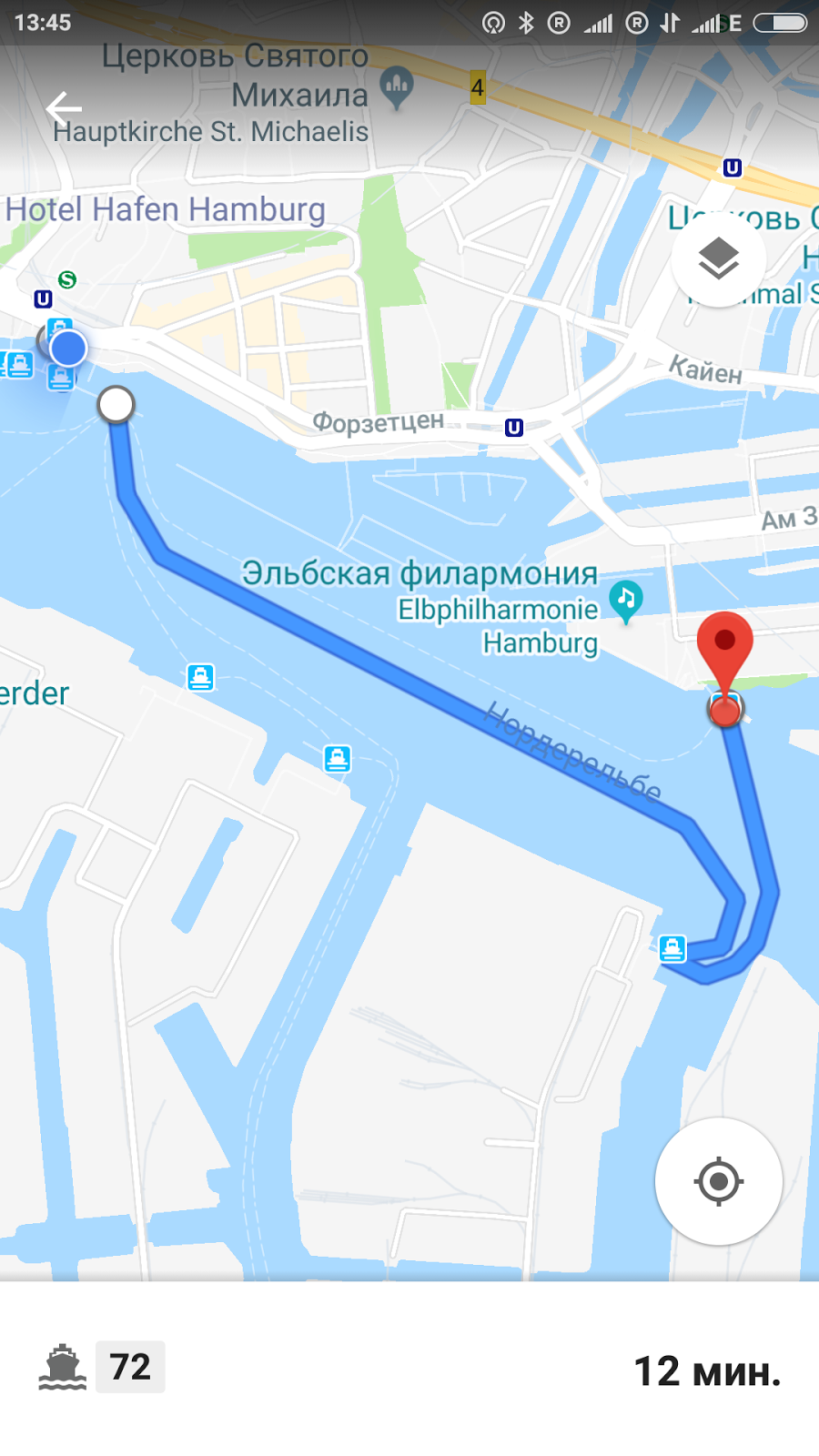 Отобедав я, еще раз благодарю создателей единого проездного билета на все виды транспорта и иду к первому причалу: Landungsbrücken Brücke 1. С этого причала уходят маршруты 62,72,73,75 я выбираю 72-й маршрут