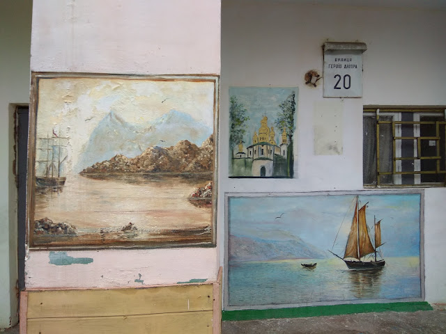 Во-первых нужно просто выйти из дому. Вот недавно, никто и не собирался искать граффити, а просто наша Бирма украла мамину Корегу и мне нужно срочно было передать на дачу эту пасту для челюстей. Поэтому я метнулась на Оболонь к нашим соседям по даче, чтобы с ними отправить передачу. У соседей по даче парадное, которое я уже показывала, ну придется еще раз показать, чтоб уж был весь комплект.