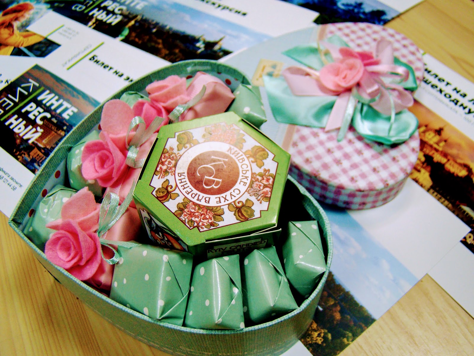 А второе - это конфетки от Мари - нашей сотрудницы. Только увидев эти коробочки я уразумела, что мои чувства можно высказать только посредством их. Ну и высказывала сегодня целый день и очень рада, что все иногородние получатели получили мои признания в любви вовремя.